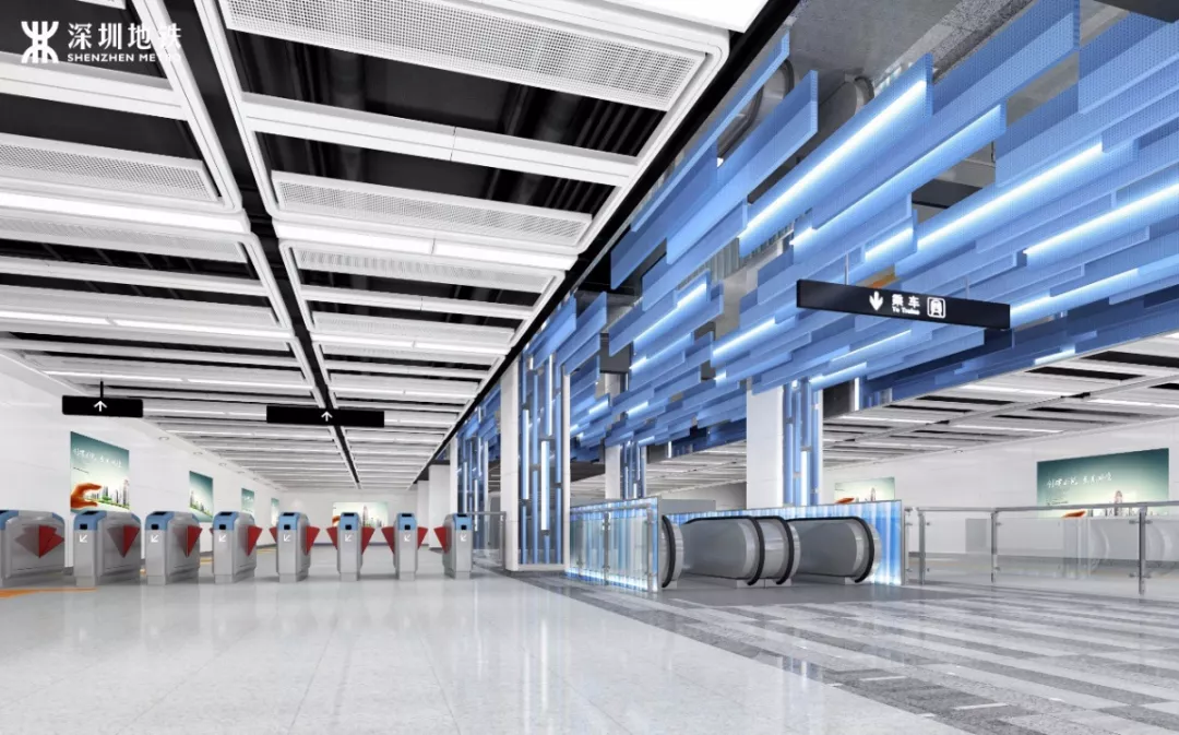 綜合考慮前海地下漫行系統(tǒng),在樓梯口部重點利用智慧科技及燈光設(shè)計,表現(xiàn)前海特色,使之成為視覺焦點,突出垂直交通樞紐,達到高效交通目的。