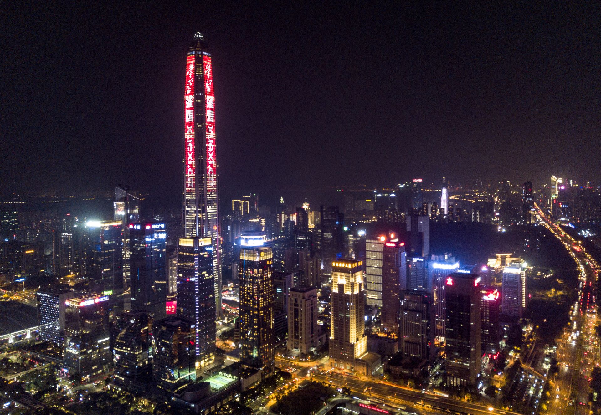記者20日晚在現(xiàn)場看到,19時起,京基100大廈和平安金融中心的樓身開始滾動播放學(xué)習(xí)強(qiáng)國logo以及“夢想從學(xué)習(xí)開始事業(yè)從實踐起步”宣傳語,吸引了大批市民的關(guān)注,不少人還掏出手機(jī)記錄下這一瞬間。據(jù)了解,此次宣傳活動將持續(xù)到27日,在京基100,“學(xué)習(xí)強(qiáng)國”的宣傳與慶祝中華人民共和國成立70周年的宣傳動畫每晚將穿插播放,從19時持續(xù)到22時。而在平安金融中心,“學(xué)習(xí)強(qiáng)國”的宣傳則在19:00—19:15循環(huán)播放,隨后切換至中心區(qū)燈光秀。
