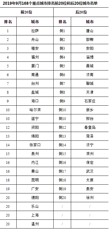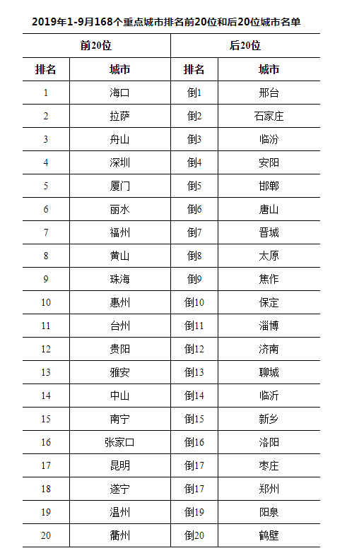 原標(biāo)題:1-9月全國(guó)空氣質(zhì)量深圳排第四,前20名廣東占4席