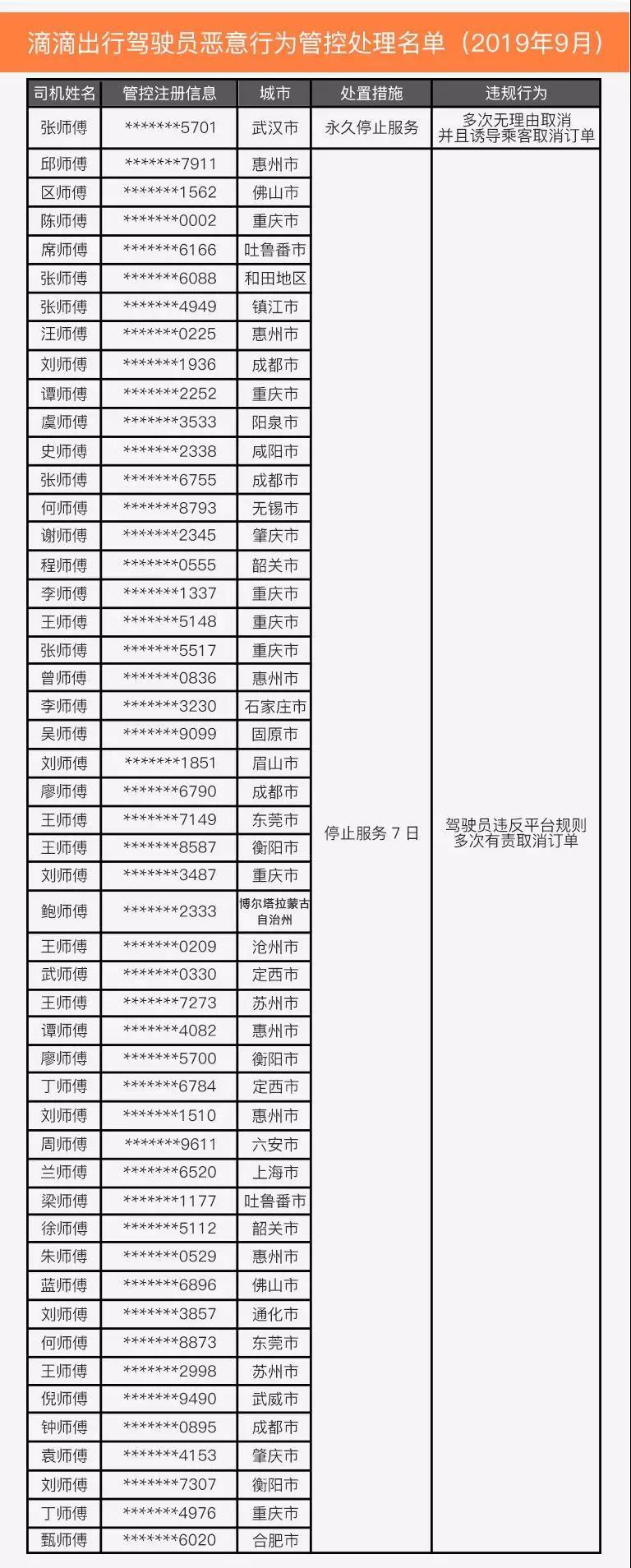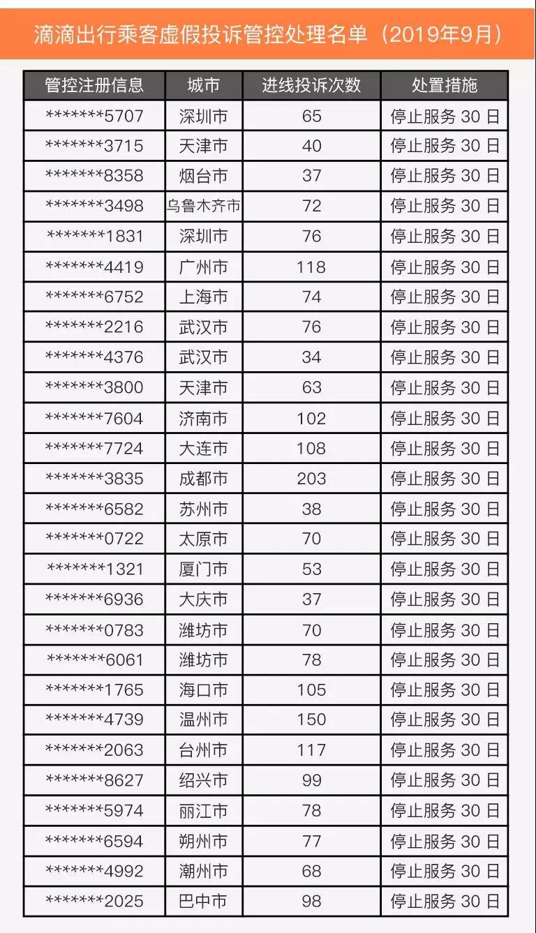 晶報(bào)2019年10月25日訊 昨日(24日),滴滴出行微信公眾號(hào)公示2019年9月部分虛假投訴的乘客以及存在惡意行為的駕駛員名單,名單中包括27名乘客和50名司機(jī)。