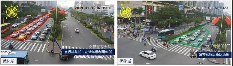 針對這一問題,深圳交警根據(jù)路口各時段、各方向的通勤需求,調(diào)整優(yōu)化了路口紅綠燈配時方案,適當增加了擁堵方向時間。優(yōu)化后,路口晚高峰西往東方向車輛排隊由300多米降至60米左右,下降80%,車輛基本實現(xiàn)1次通行。