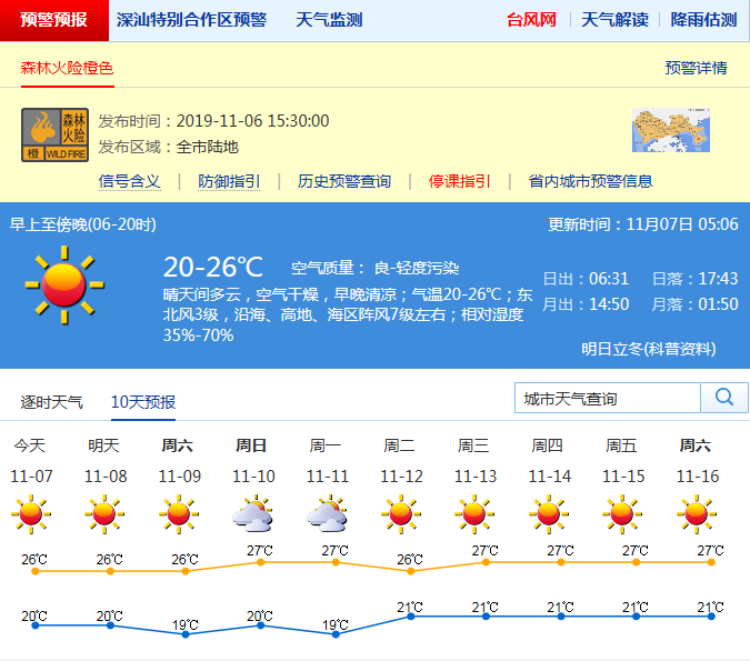 見圳客戶端·深圳新聞網2019年11月7日訊 空氣非常干燥,沿海及高地陣風7級左右,氣溫20-26℃。未來幾天干燥加劇,請注意用火安全,戶外運動需及時補充水分。