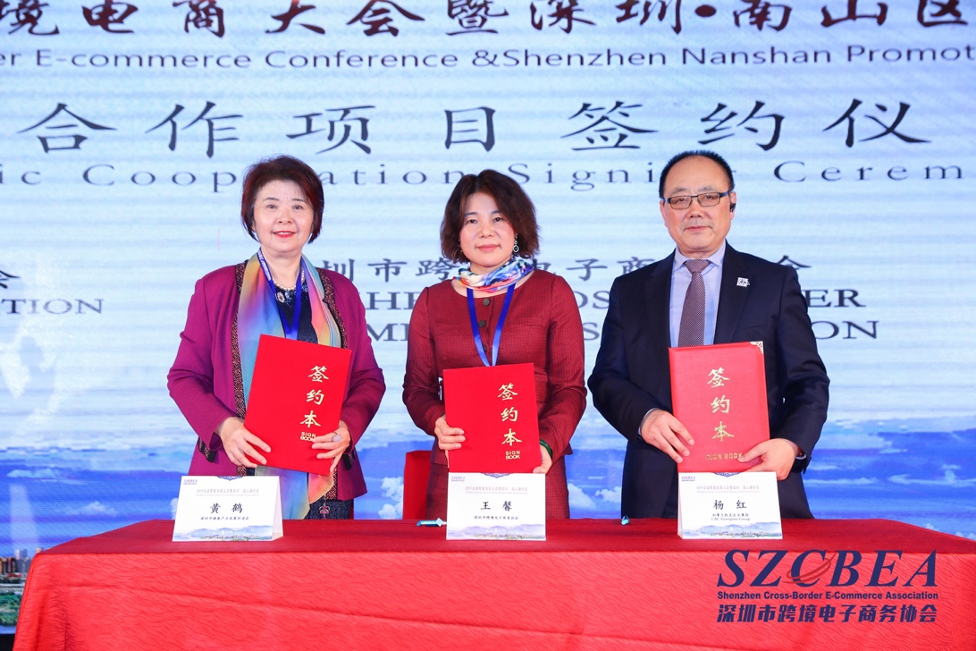 會上,深圳市健康產業(yè)發(fā)展促進會會長黃鶴女士、深圳市跨境電子商務協會執(zhí)行會長王馨女士、加拿大凱克企業(yè)集團董事長楊紅先生上臺進行了戰(zhàn)略合作簽約儀式。