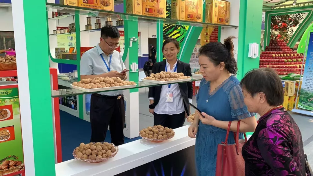 崇信縣的展位,本次帶了八個(gè)品種的果子過來,市民最感興趣的品種是中秋王,該名字的原因是它成熟在中秋期間。