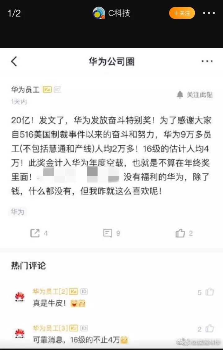 原標(biāo)題:20億?!華為雙11發(fā)獎金人均10萬!男員工立馬給老婆買包包…