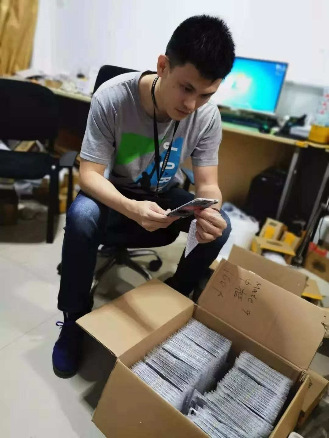 對(duì)電商平臺(tái)網(wǎng)店“深圳市尤信達(dá)包裝印刷有限公司”位于深圳市福田區(qū)華強(qiáng)北街道華美大廈某倉庫窩點(diǎn)進(jìn)行了突擊檢查,執(zhí)法人員現(xiàn)場(chǎng)發(fā)現(xiàn)一大批侵犯華為注冊(cè)商標(biāo)各類包裝材料,各種手機(jī)零配件包裝材料堆滿了整個(gè)場(chǎng)所,現(xiàn)場(chǎng)只留有勉強(qiáng)一人通行的過道,經(jīng)現(xiàn)場(chǎng)清點(diǎn)共323箱,品類涉及有各種零件包裝盒、合格證及防偽標(biāo)簽。