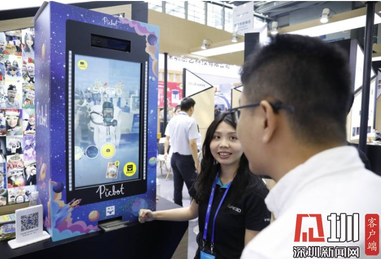 2019年11月13日,深圳會展中心,一位正在與機(jī)器互動的觀眾。該機(jī)器是由臺灣公司啟云科技設(shè)計,多用在營銷領(lǐng)域,用戶可與之互動拍出照片。