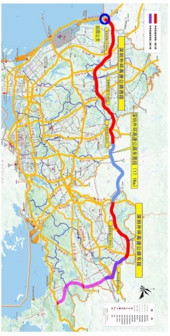 外環(huán)高速全線分為深圳段和東莞段,全長(zhǎng)約93km(含遠(yuǎn)期規(guī)劃里程)。