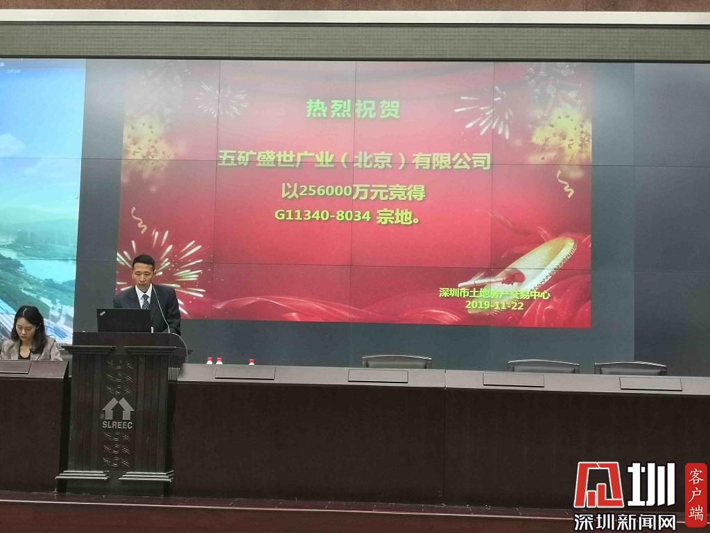 其中,坪山G11340-8034宗地,位于坪山區(qū)馬巒街道,起始價21.02億元,6家企業(yè)參與競拍,由五礦盛業(yè)廣業(yè)(北京)有限公司出價25.6億元競得,可售樓面價21680元/㎡,需配建11080㎡人才住房,限定普通商品住房入市最高均價為38750/平方米。