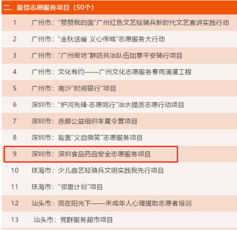 深圳市食藥志愿服務總隊接連斬獲兩項志愿服務大獎