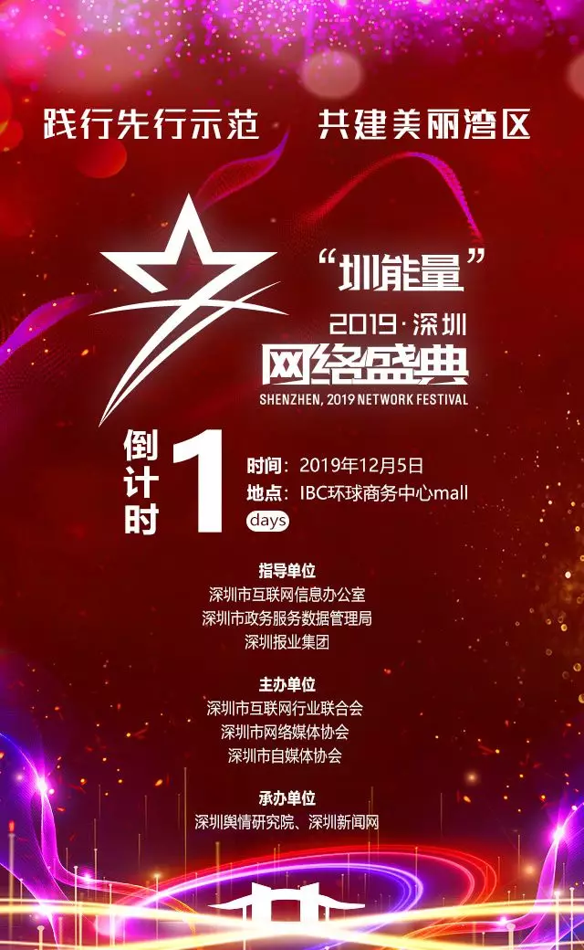 為了展示深圳2019年度優(yōu)秀網絡典型,釋放榜樣示范作用,弘揚網絡正能量,形成爭相譜寫新時代、人人傳播正能量的生動氛圍,深圳網絡盛典應運而生。