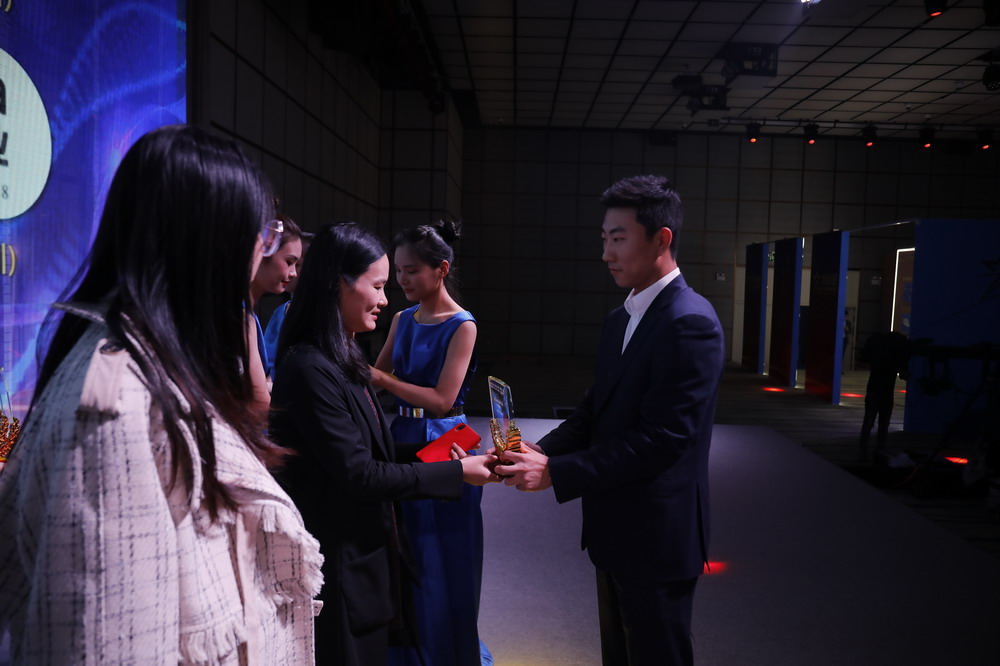 水貝珠寶集團副總裁盧森榮為“房地產行業(yè)最受網民歡迎品牌”頒獎。
