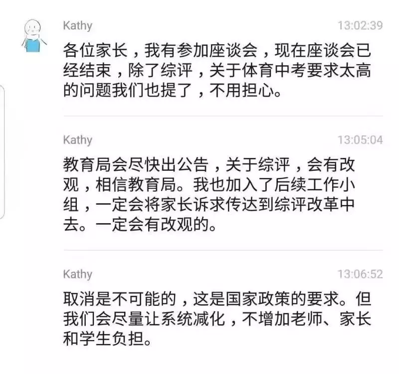 今天上午,深圳市教育局邀請(qǐng)10位家長代表參加座談會(huì)。反應(yīng)快速,也足夠有誠意,座談會(huì)的一個(gè)重要的信息是——網(wǎng)紅雪媽將此前網(wǎng)文上一萬多條網(wǎng)友關(guān)于綜評(píng)的評(píng)論搜集起來,拷在U盤里,包成“紅包”,現(xiàn)場(chǎng)交到市教育局局長手中。局長現(xiàn)場(chǎng)欣然接受,并直言是很寶貴的意見。座談會(huì)后,市教育局“綜評(píng)”專班召開第二次研討會(huì),會(huì)議決定深圳市暫停2019年初中學(xué)生綜合素質(zhì)評(píng)價(jià)填報(bào)工作,并將盡快完善初中生綜合素質(zhì)評(píng)價(jià)方案。不平則鳴,家長們關(guān)于深圳初中生素質(zhì)綜評(píng)的怒火不難理解,素質(zhì)綜評(píng)要跨過輿情沸騰這道坎,接下來要做的事情還有很多。