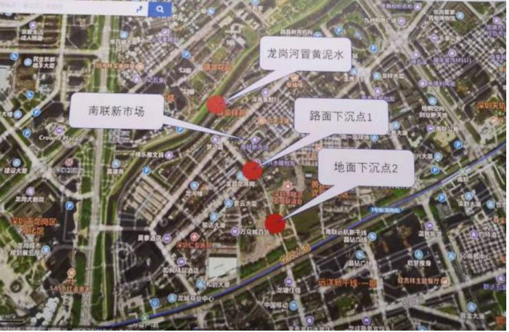 12月5日,龍崗街道龍園路附近有三個地點分別出現(xiàn)局部地面沉降、河道黃泥水冒出等情況,經(jīng)專家初步判斷,主要因地下水文條件變化、溶巖坍塌等地質(zhì)變化引起。
