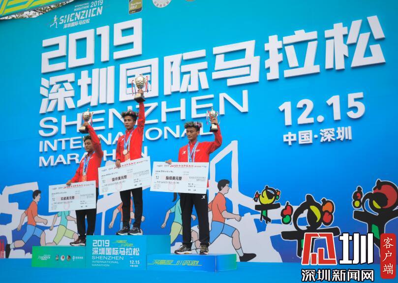 全程男子冠軍Tadese Tola Woldegeberel和第二名獲獎?wù)邠肀А?/p>