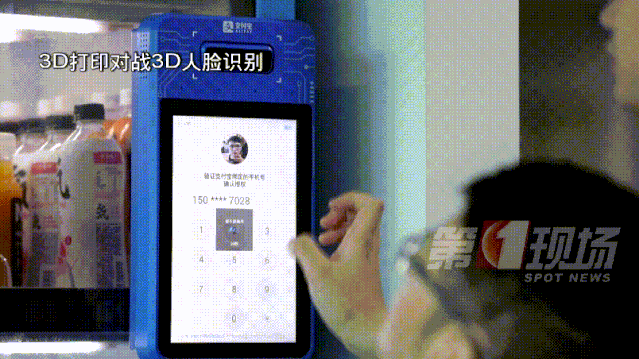 我們把頭模放在了自動售賣機(jī)的識別系統(tǒng)前,支付系統(tǒng)并沒有直接通過,而是發(fā)起了二次驗(yàn)證,輸入手機(jī)后,系統(tǒng)最終顯示支付失敗。