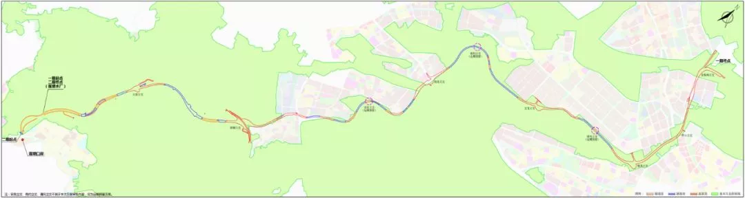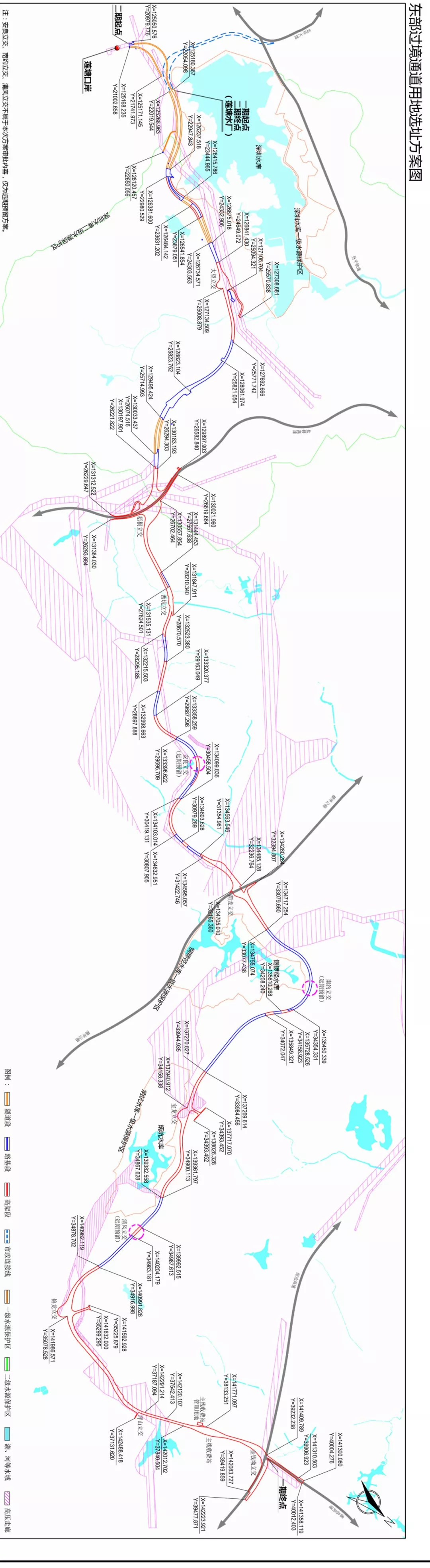深圳市擬建設(shè)深圳市東部過境通道,途經(jīng)羅湖區(qū)蓮塘街道、黃貝街道和東湖街道,龍崗區(qū)橫崗街道、園山街道和寶龍街道,坪山區(qū)坪山街道,路線全長(zhǎng)約32.2公里。