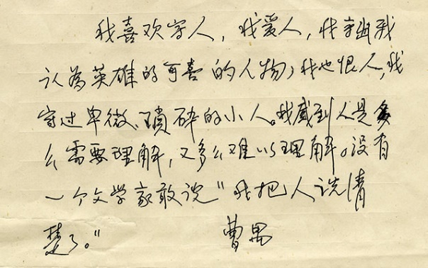 曹禺創(chuàng)作感言:“我喜歡寫(xiě)人”手稿