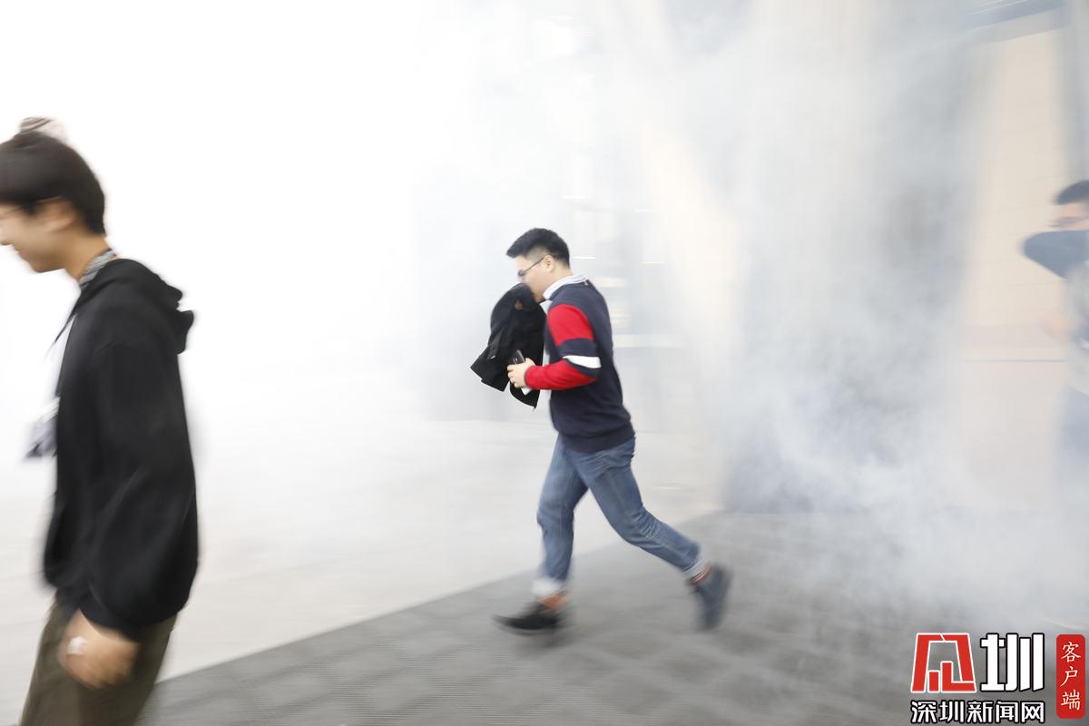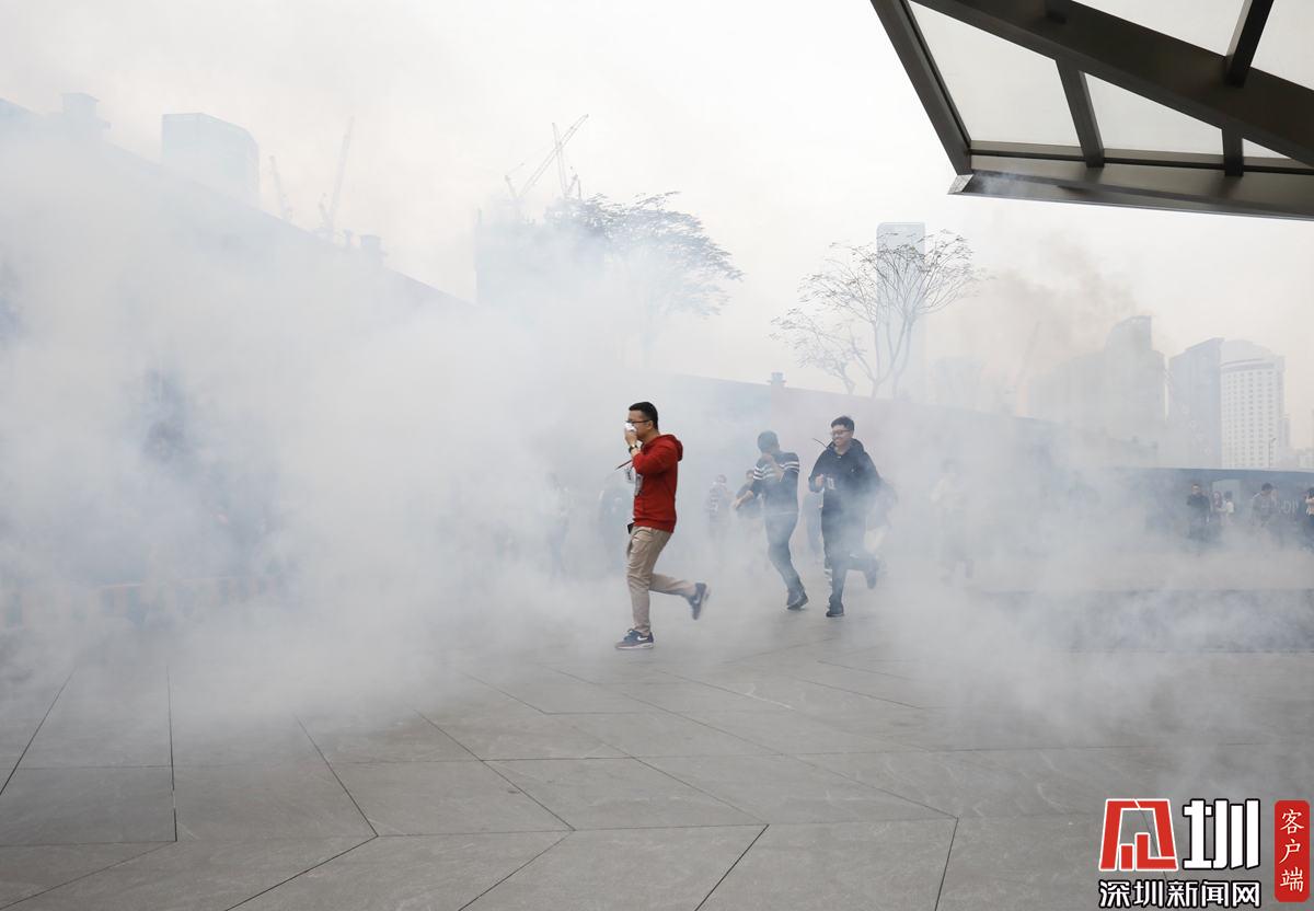 演練開始后,模擬中國華潤大廈24層因電氣線路發(fā)生短路,突發(fā)火災(zāi),火勢迅速蔓延。此時正值上班高峰期,樓內(nèi)有大量辦公人員需要疏散救助,情況十分緊急?!盎馂?zāi)”警報拉響后,大樓內(nèi)部的微型消防站和技術(shù)處置隊進(jìn)行先期處置。深圳市消防救援支隊同時快速調(diào)派特勤、南山、寶安、福田等大隊48輛消防車、230余名消防員到場處置,并聯(lián)動應(yīng)急管理、交警、醫(yī)療、水務(wù)等部門到場協(xié)同處置。消防救援人員“逆行”深入起火建筑,疏散樓內(nèi)5200余名群眾,同時按照“以固為主,固移結(jié)合”的戰(zhàn)術(shù),利用水槍、水泡、滅火機(jī)器人、滅火無人機(jī)、舉高消防車、投彈式高層建筑干粉消防車等壓制火勢,最終成功將“大火”撲滅。