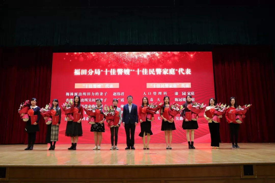 ▲區(qū)委副書記、區(qū)長(zhǎng)黃偉為“十佳警嫂”“十佳民警家庭”頒獎(jiǎng)