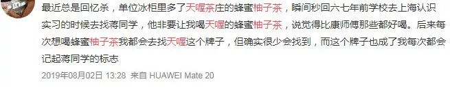 不少網(wǎng)友發(fā)現(xiàn)超市、商店下架天喔招牌飲品蜂蜜柚子茶后,紛紛表示喝了這么多年,突然發(fā)現(xiàn)沒(méi)得賣之后,有種莫名的懷念。
