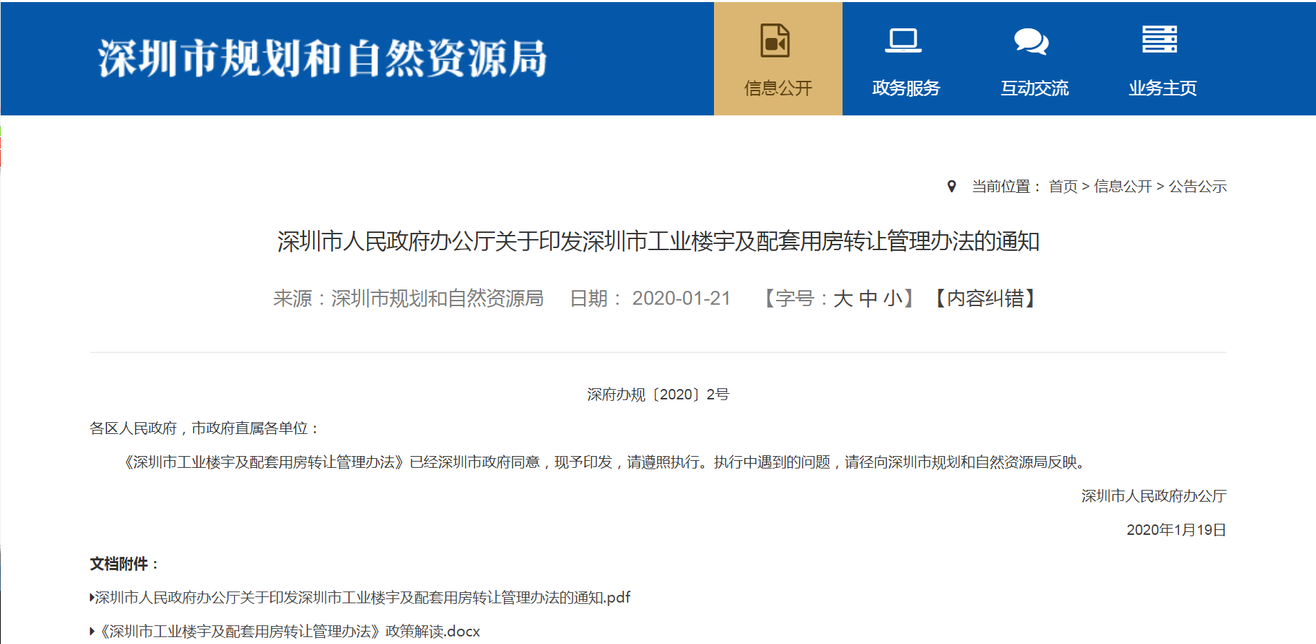 見(jiàn)圳客戶(hù)端·深圳新聞網(wǎng)2020年1月21日訊(見(jiàn)圳客戶(hù)端、深圳新聞網(wǎng)記者潘潤(rùn)華)為進(jìn)一步減輕企業(yè)負(fù)擔(dān),改善營(yíng)商環(huán)境,推動(dòng)產(chǎn)業(yè)轉(zhuǎn)型升級(jí),深圳出新政取消工業(yè)樓宇及配套用房轉(zhuǎn)讓增值收益、完善轉(zhuǎn)讓規(guī)則!1月21日,記者從深圳市規(guī)劃和自然資源局獲悉,《深圳市工業(yè)樓宇及配套用房轉(zhuǎn)讓管理辦法》(以下簡(jiǎn)稱(chēng)《管理辦法》)經(jīng)深圳市政府同意正式印發(fā)。《管理辦法》規(guī)范了工業(yè)樓宇及工業(yè)配套用房受讓人資格條件、強(qiáng)化了產(chǎn)業(yè)監(jiān)管、設(shè)定了過(guò)渡政策。據(jù)悉,《管理辦法》自2月1日起施行,有效期5年。