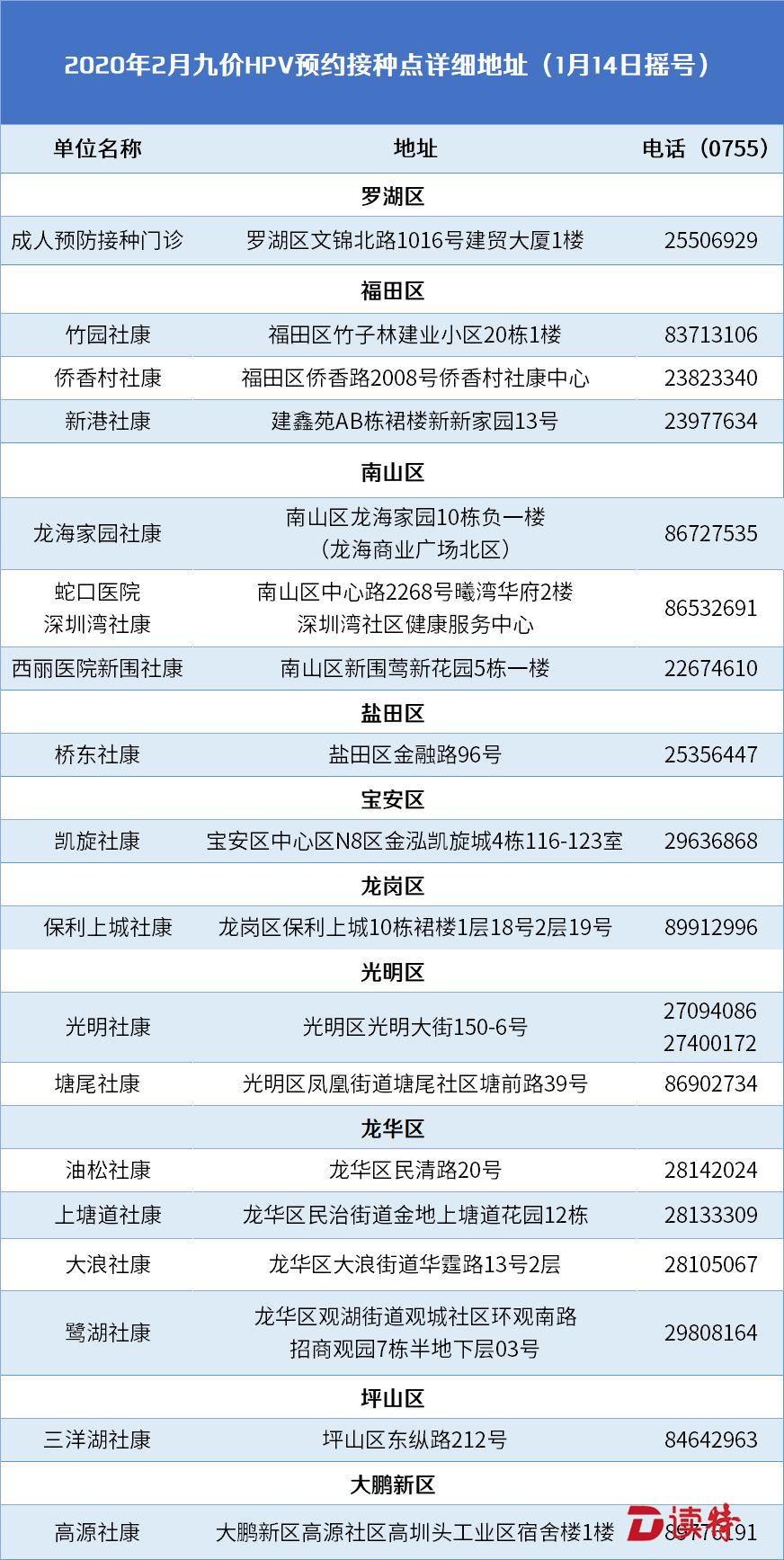 深圳特區(qū)報2020年1月31日訊 為貫徹執(zhí)行《廣東省推出防控新型冠狀病毒感染的肺炎疫情一級響應16條措施》,經(jīng)專家評估并報深圳衛(wèi)健委同意,決定全市預防接種門診的開診時間,暫推遲到2月14日后,具體時間視防控工作需要另行通知。搖中今年1月九價HPV疫苗的小姐姐,不用擔心,2月14日后再撥打社康咨詢電話,和工作人員協(xié)商修改這次的打針時間。