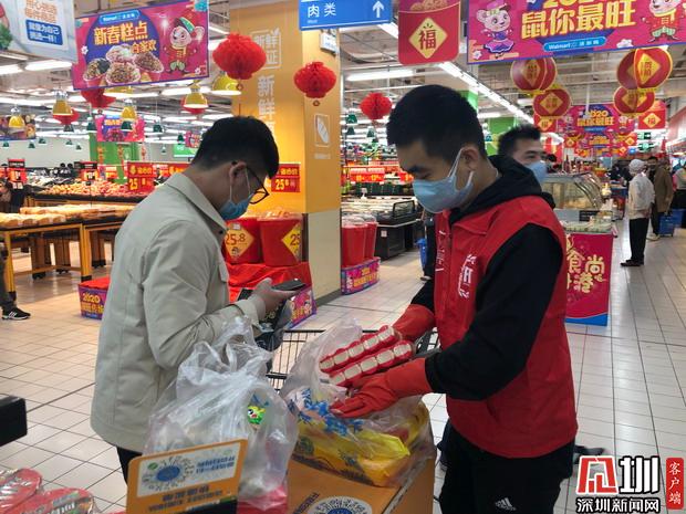 見圳客戶端·深圳新聞網(wǎng)2020年1月31日訊(見圳客戶端、深圳新聞網(wǎng)記者 胡津瑋)戴上口罩、手套,再穿上標志性的紅色馬甲,市食藥志愿服務總隊的志愿者們紛紛走上超市的各個崗位,清理貨品、補貨、對購物車購物籃進行清潔消毒、為來購物的市民測量體溫…據(jù)了解,由于春節(jié)期間各大商超缺少人手,在市市場監(jiān)管局與團市委的指導下,市食藥志愿服務總隊迅速調(diào)動全市在深的食品藥品安全志愿者,成立了由近300名食品藥品安全志愿者組成的春節(jié)“菜籃子”志愿者保障工作小組,為全市各大商超提供志愿服務,全力保障市場供應、消除市民顧慮,在防控疫情特殊期間注入了紅馬甲的正能量。記者今天便走訪了深圳的一家超市,尋找這批紅色的身影,了解他們一天的工作。