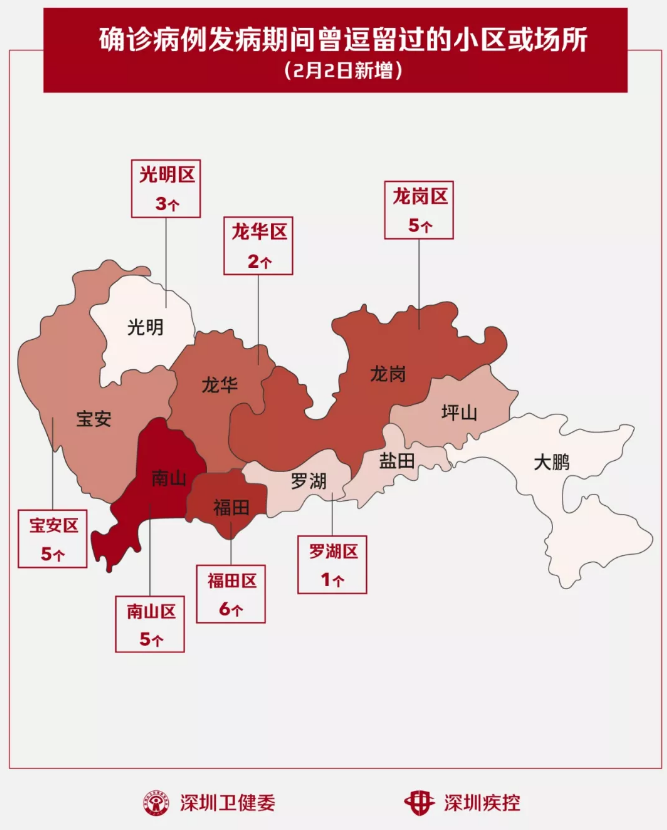 2月2日,疾控專業(yè)人員通過最新的流行病學(xué)調(diào)查確認(rèn),深圳新增27個(gè)小區(qū)(場(chǎng)所),有新確診的病人在出現(xiàn)病征期間曾經(jīng)逗留。
