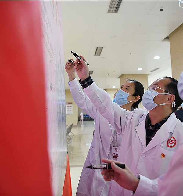 在整個(gè)疫情阻擊戰(zhàn)中,龍崗區(qū)婦幼保健院黨組織自始至終都發(fā)揮著不可替代的先鋒模范作用,在疫情剛開始的時(shí)候,以曹樂勝院長(zhǎng)為首的醫(yī)院黨委就身先士卒緊急行動(dòng)起來(lái)迅速投入到抗病毒戰(zhàn)斗中去。院黨委發(fā)出了通知,號(hào)召?gòu)V大員工積極行動(dòng)起來(lái),投身疫情防控第一線,全院人員迅速響應(yīng),截止2月3日,報(bào)名人數(shù)達(dá)369人,其中黨員112人。醫(yī)院組織了部分代表參加的宣誓儀式,大家激情滿懷地舉起右手,莊嚴(yán)承諾:我將堅(jiān)守初心,勇?lián)姑?;無(wú)條件服從大局,時(shí)刻準(zhǔn)備著聽候組織調(diào)令;立志沖鋒在前,誓到防疫第一線;我必履職盡責(zé),嚴(yán)守規(guī)范,防護(hù)到位,確保零感染;保證與病毒戰(zhàn)斗到底,不打贏這場(chǎng)硬仗絕不收兵。