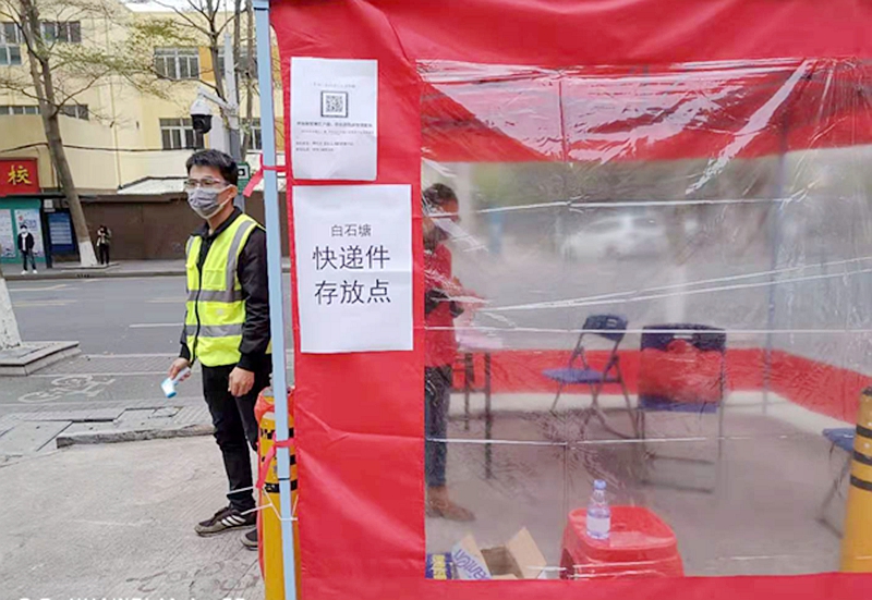根據(jù)防控疫情的需要,坪地街道要求各社區(qū)在77個城中村、物業(yè)小區(qū)內(nèi),按照既方便群眾又無防控風(fēng)險的原則,選定1-3個快遞、外賣集中收取點,并有專人看守,讓快遞員通知收件人下樓自取,對居家隔離人員由工作人員送至其門口,不能讓快遞員走樓入戶,防止交叉感染。集中收取點各社區(qū)可因地制宜,可以考慮圍合卡口的治安崗?fù)?、居民小組辦公樓等區(qū)域。