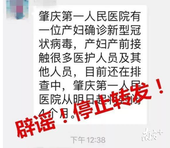 “肇慶第一人民醫(yī)院有孕婦確診,產(chǎn)前接觸很多醫(yī)護(hù)人員。現(xiàn)在要隔離183人,封閉醫(yī)院四個月?!苯?,肇慶的微信群中,這條謠言瘋傳,引發(fā)市民恐慌,不敢去醫(yī)院就醫(yī)。
