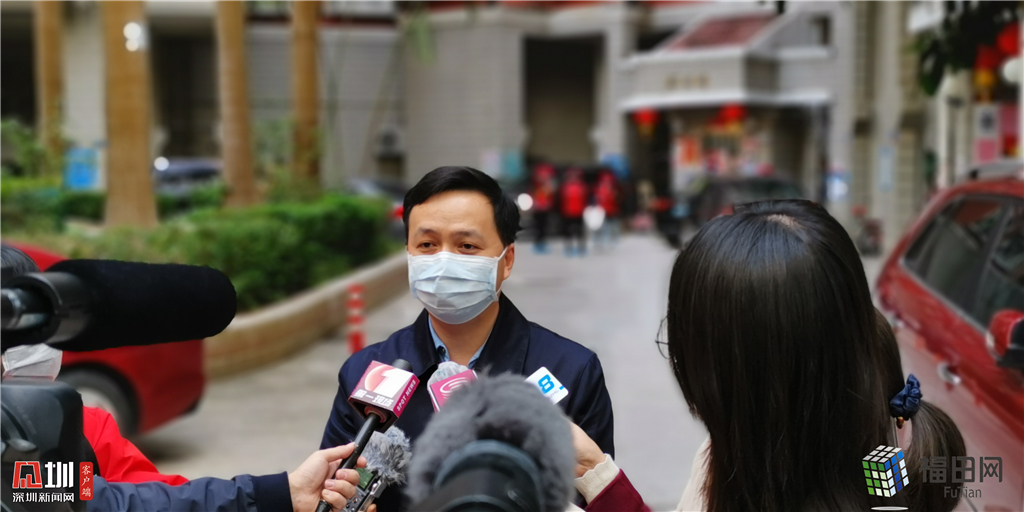 2月9日下午,記者來(lái)到梅林街道山水居小區(qū)實(shí)地探訪。進(jìn)入小區(qū)前,所有進(jìn)出人員都必須量體溫,正好來(lái)此調(diào)研的福田區(qū)委副書(shū)記黃曉鵬也不例外。