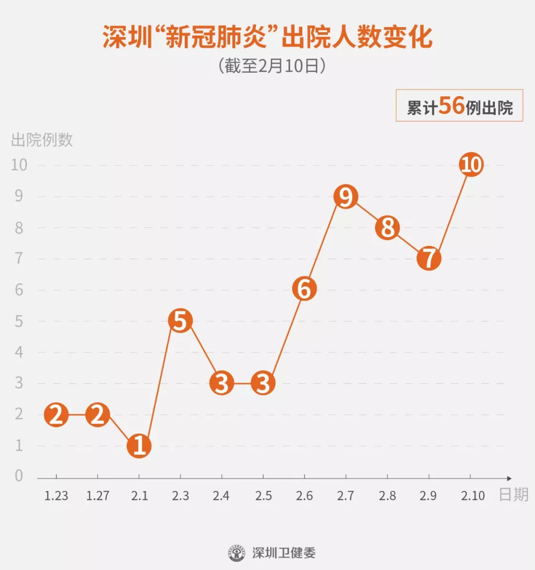 2月10日下午,經(jīng)專家組會診,深圳再有10名新型冠狀病毒肺炎確診患者出院,累計的出院者達(dá)56人。