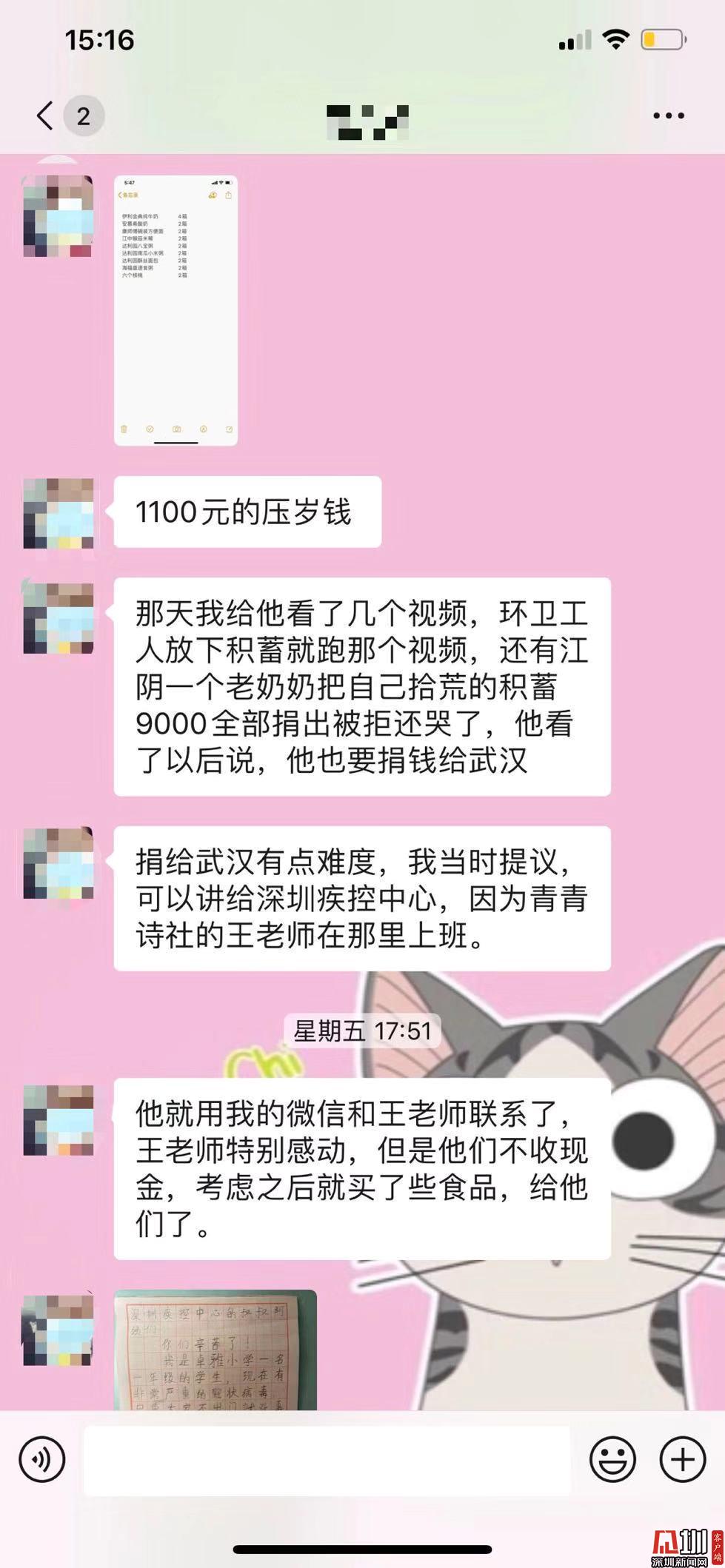 在肆虐的疫情面前,一名7歲的小男孩不惜動用了今年的全部壓歲錢1100元,購買食品捐贈給深圳市疾病預防控制中心。