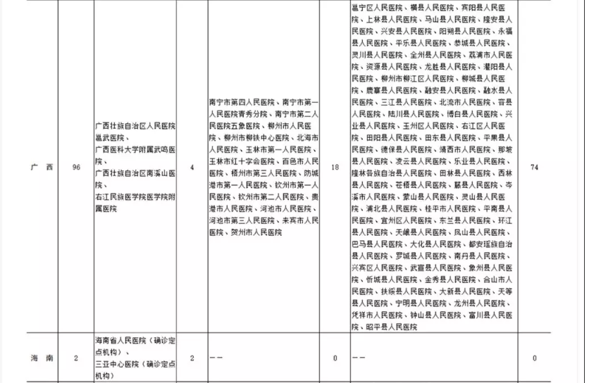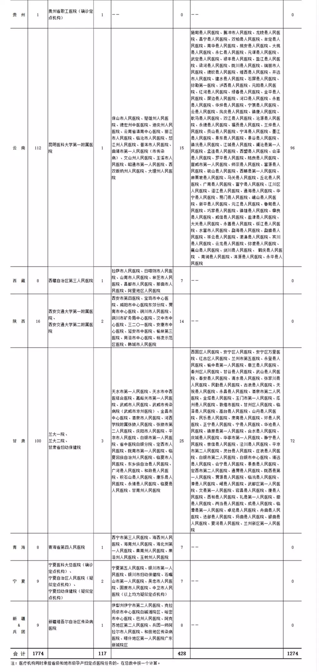各?。▍^(qū)、市)新型冠狀病毒感染疑似或確診孕產婦產檢和住院分娩定點醫(yī)院(截至2020年2月11日)