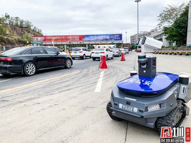 警用巡視機器人“建國”在深圳高速路口執(zhí)行巡邏任務。