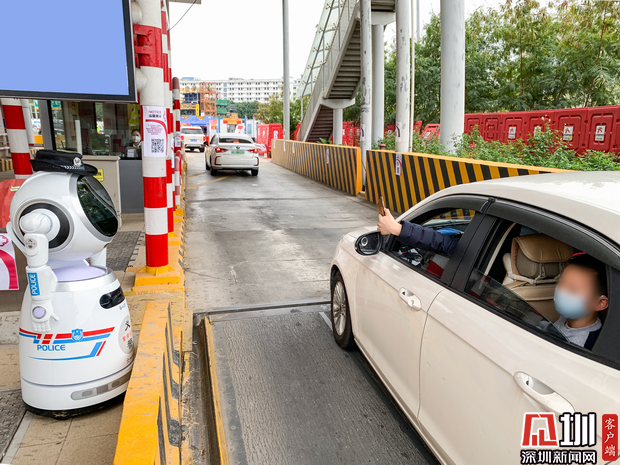 5G機器人義警“黃田田”提醒回深車輛掃碼登記。