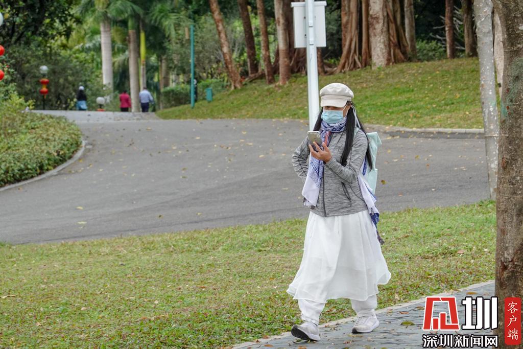 大姐邊散步邊通過(guò)手機(jī)視頻了解疫情資訊