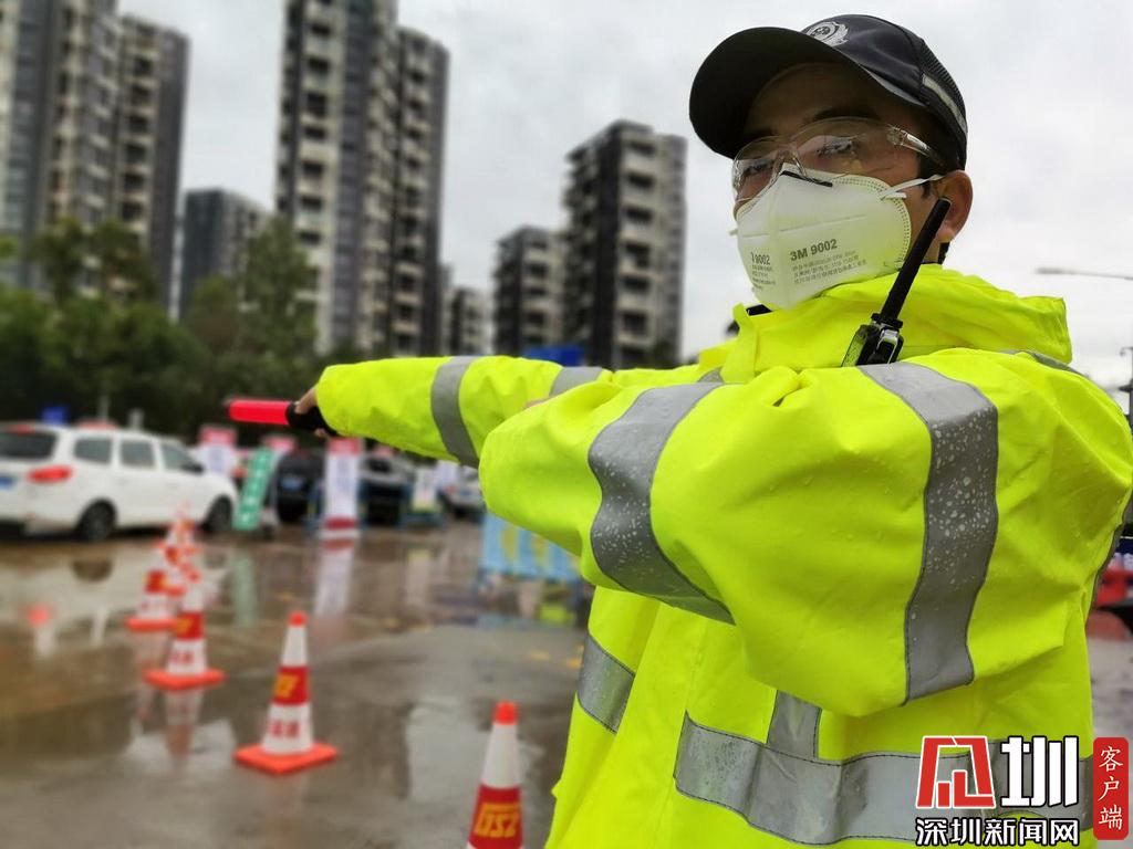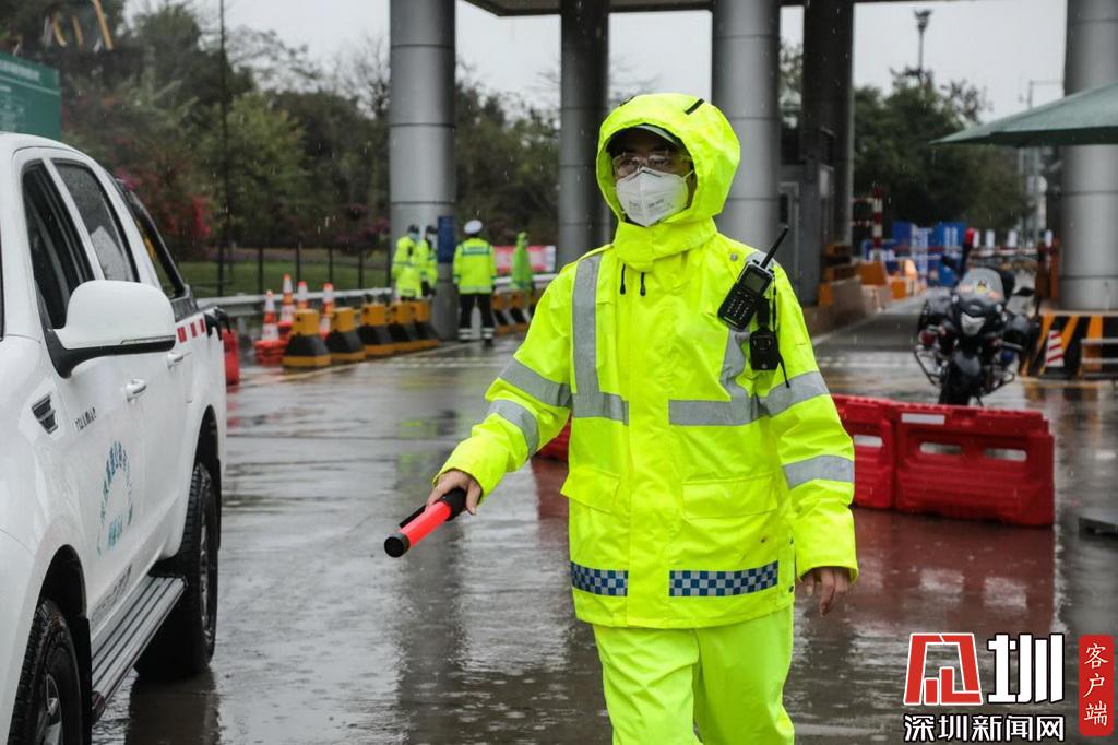 雨中執(zhí)勤的深圳交警民警。
