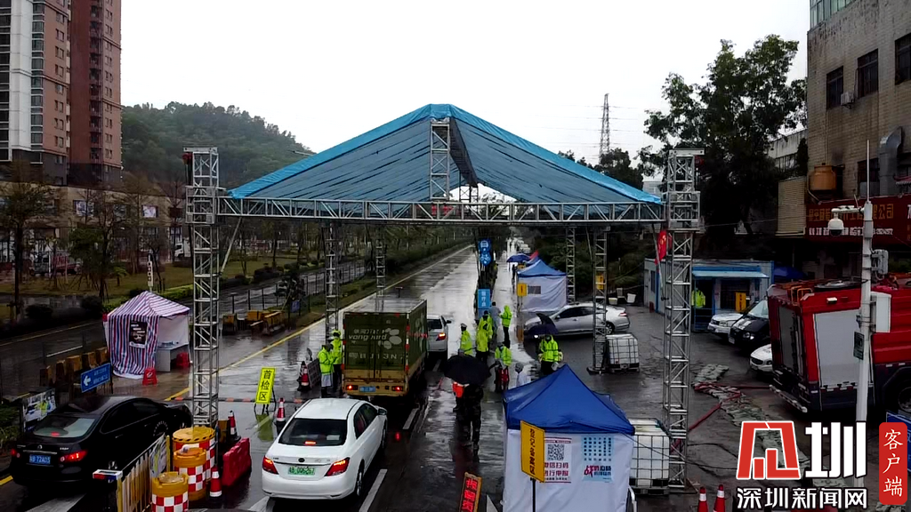 根據(jù)天氣降雨預(yù)警,布吉街道經(jīng)科辦和后勤連夜奮戰(zhàn),在鳳凰祥新西卡點(diǎn)搭建起長(zhǎng)20米、寬10米、高5米的臨時(shí)雨棚,保障一線奮戰(zhàn)干部職工以及過往市民開窗檢測(cè)的方便。