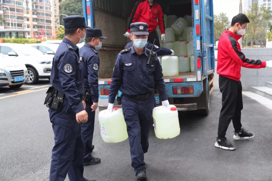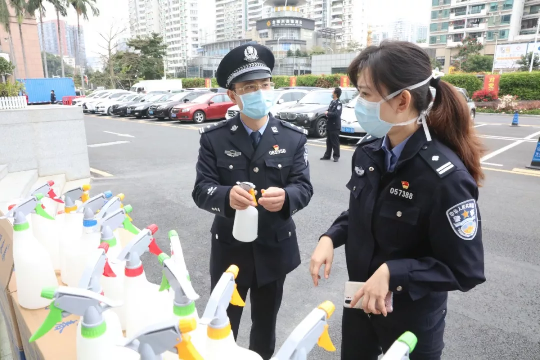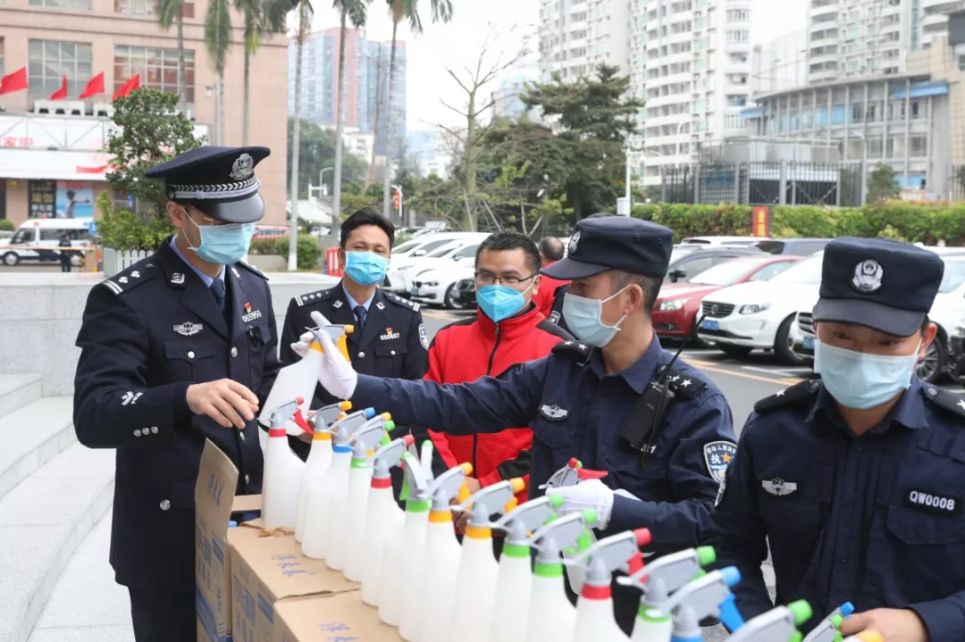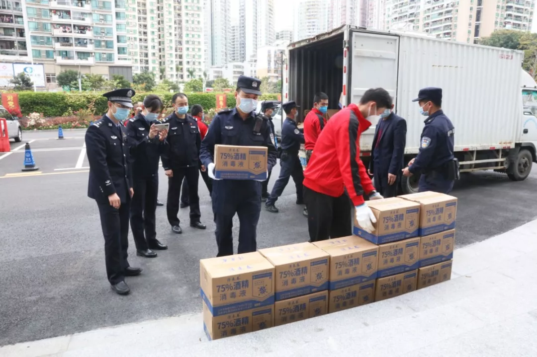 當(dāng)天16時(shí)許,愛(ài)心企業(yè)代表肖先生帶著50桶20公斤消毒液、480瓶消毒酒精、20個(gè)噴壺來(lái)到了福田分局,捐贈(zèng)給了福田警方。福田分局黨委委員、政治處主任桂禮強(qiáng)代表分局接收捐贈(zèng)抗疫物資,并對(duì)愛(ài)心企業(yè)表示感謝。