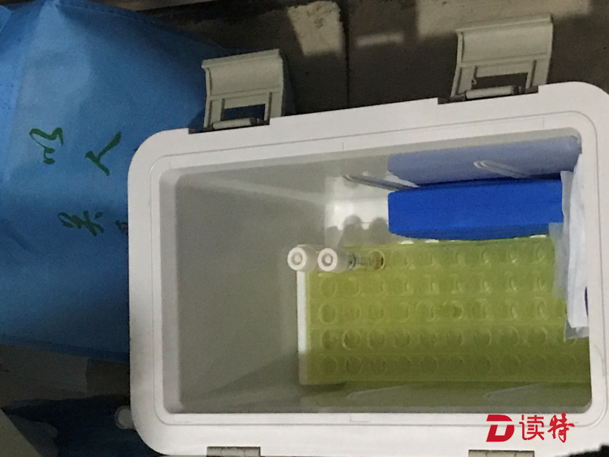據了解,為了增加采樣的準確性,每個醫(yī)學觀察居民均采用咽部和鼻腔分別取樣。醫(yī)護人員先用一個咽拭子在孫女士的咽喉內部輕輕擦拭,另一個鼻拭子在鼻道內鼻腭處轉動,然后將拭子放入貼有標簽的樣本管內。完成操作后,三位工作人員更換手套,為孫女士的愛人和孩子完成了采樣,采集的樣品被放入了工作人員隨身攜帶的“送檢專用箱”中。