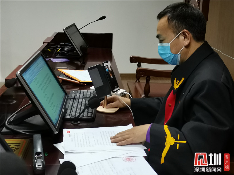 2月13日晚上8點,龍崗法院橫崗法庭第二審判庭庭長張國輝在運(yùn)用掌上法庭審理一宗農(nóng)民工追討欠薪的勞務(wù)糾紛案件。