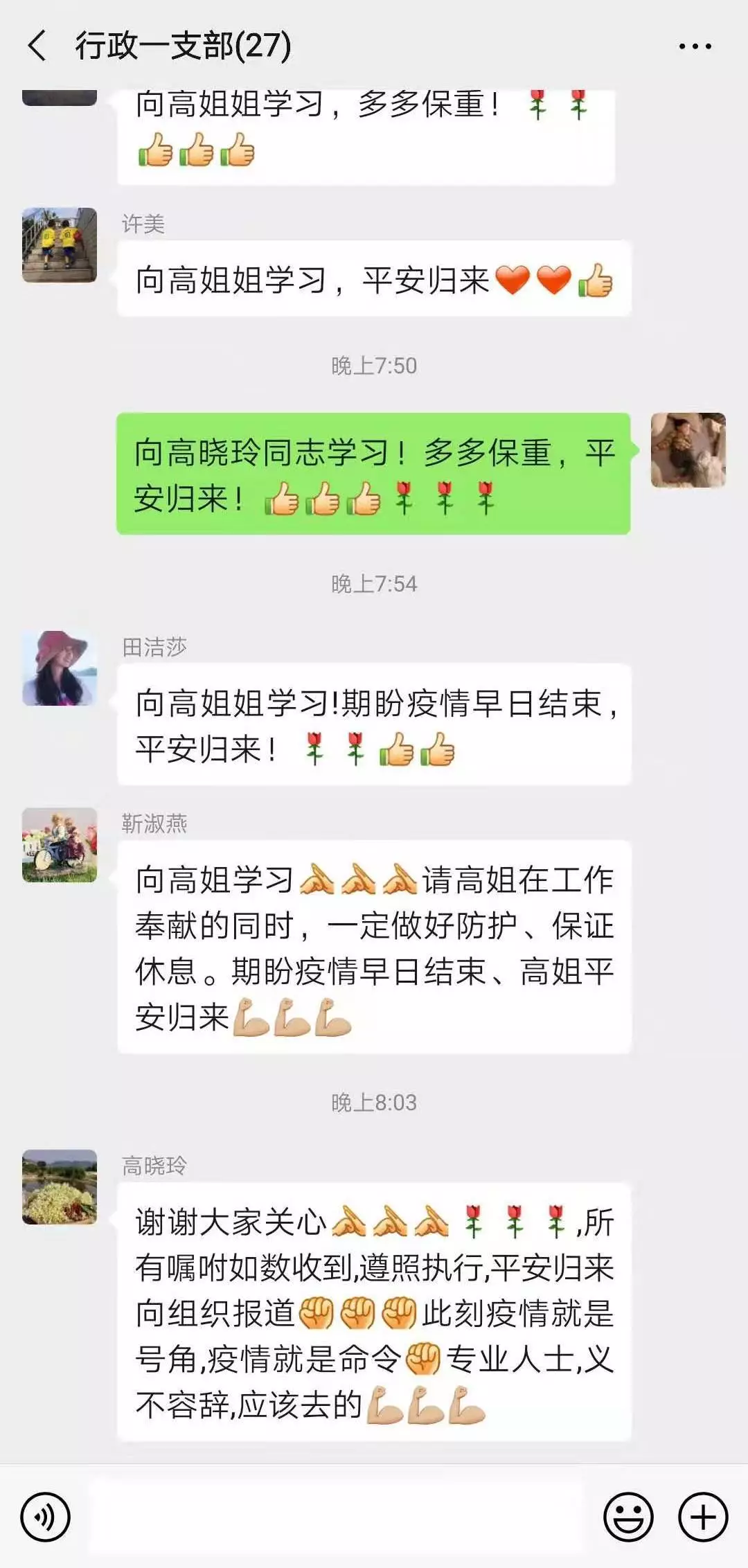晚上,在黨支部的微信群里,作為支部委員的高曉玲向組織堅(jiān)定承諾:“此刻疫情就是號(hào)角,疫情就是命令,專(zhuān)業(yè)人士,義不容辭,應(yīng)該去的!”