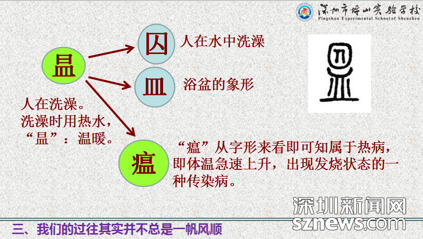 坪山實(shí)驗(yàn)學(xué)校校長安國強(qiáng)校通過“說文解字”的形式生動講解了“瘟”與“疫”的字義,讓大朋友和小朋友們都理解了瘟疫爆發(fā)時的可怕性與嚴(yán)重性。他還從歷史的角度讓同學(xué)們了解人類與自然災(zāi)害斗爭的過往。