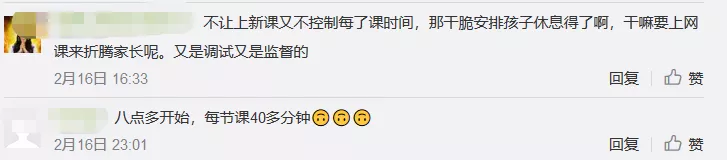 一系列操作下來,家長的負(fù)擔(dān)更重,評(píng)估網(wǎng)課效果如何先暫且不說,還要擔(dān)心孩子長時(shí)間對(duì)著屏幕影響視力的問題。同時(shí),師生和家長對(duì)軟件應(yīng)用的習(xí)慣程度較低等也讓一些線上課堂“看上去很美”,學(xué)起來有難度。
