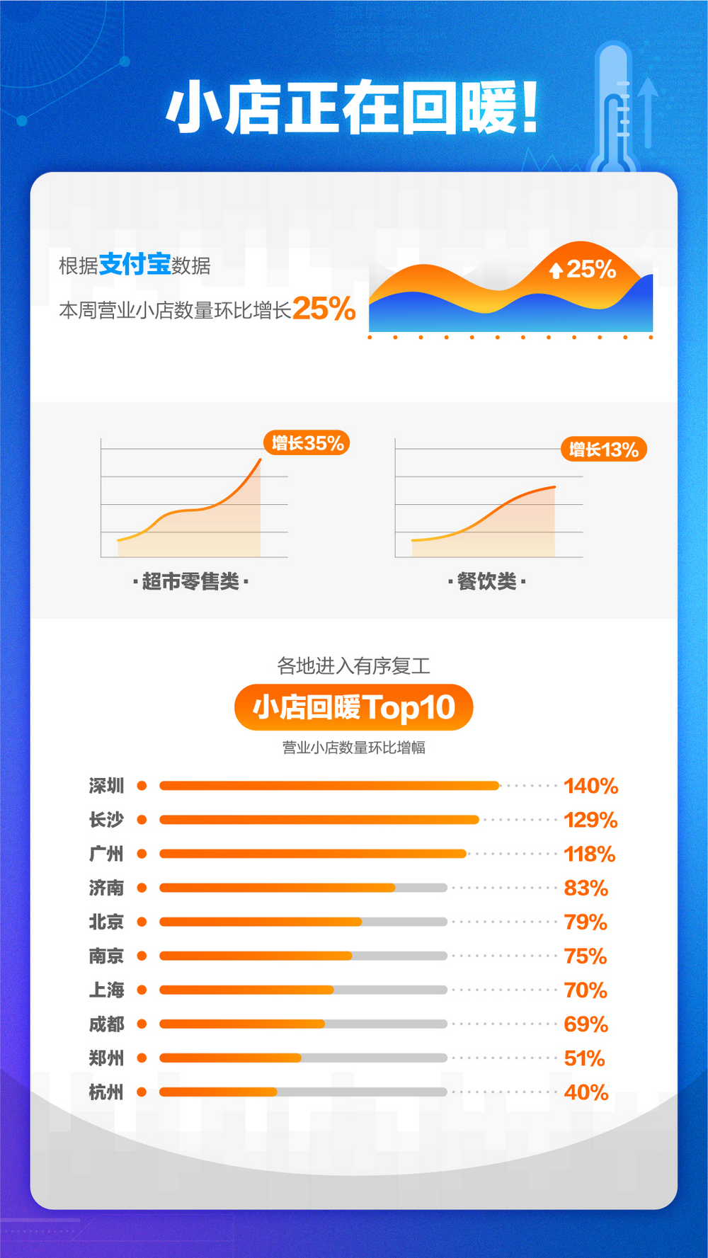 支付寶方面表示,將聯(lián)合各方合作伙伴,通過貸款、保險、外賣、在線進(jìn)貨等多種手段,全力支撐小店回暖。