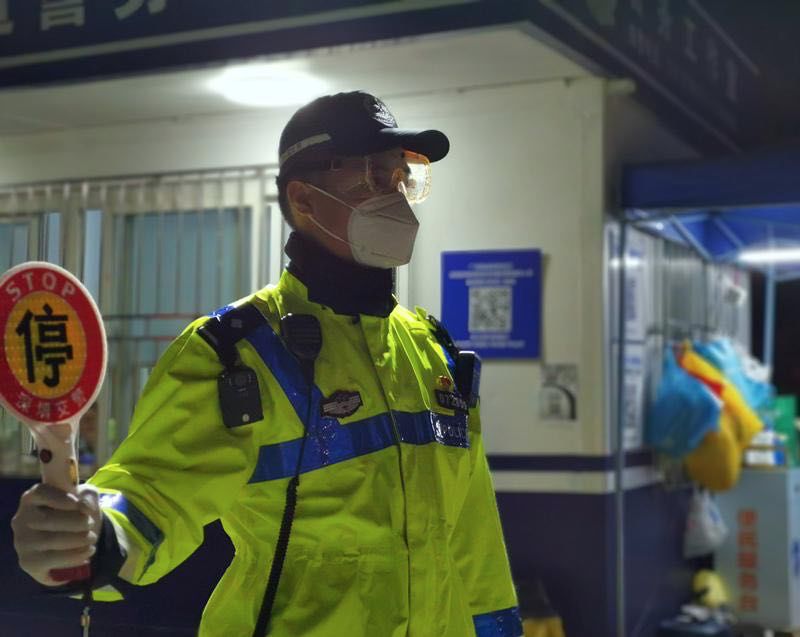 2月14日的凌晨,龍利正在廣深高速寶安收費(fèi)站防疫檢查點(diǎn)執(zhí)勤,每一輛入深的車輛他都必須仔仔細(xì)細(xì)地?cái)r截下來,核對信息,協(xié)助防疫工作人員給車上所有人測量體溫。
