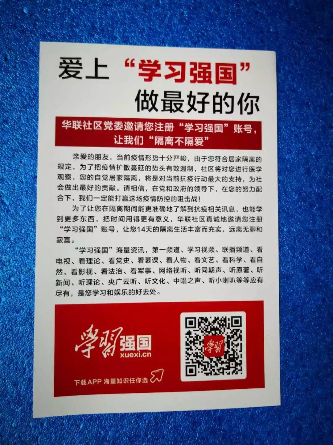 邀請隔離居民注冊“學(xué)習(xí)強國”